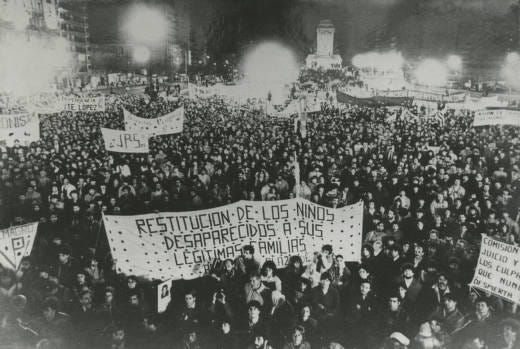 The end of the Argentine junta after its humiliation by the UK military expedition in the Falklands, brought a civilian government into power with the task of salvaging the rule of law and healing the wounds of dictatorship. The new president, Raúl Ricardo Alfonsín, took office on December 10, 1983, and quickly moved to rescind an amnesty for those who might be guilty of human rights abuses. His most important step was the creation of a National Commission on the Disappearance of Persons (CONADEP) under the chairmanship of the novelist Ernesto Sábato but the Commission failed to account for more than a fraction of the disappeared (fewer than 9,000). The Mothers of the Plaza de Mayo had estimated that as many as 30,000 had been abducted [see note].[14]